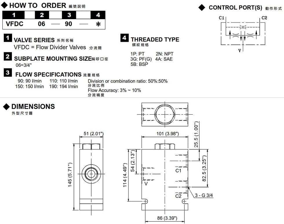 | VFDC-06 | 250 (3626 psi) | 194 (51.25 gpm) | 2 (4.40 lbs) |