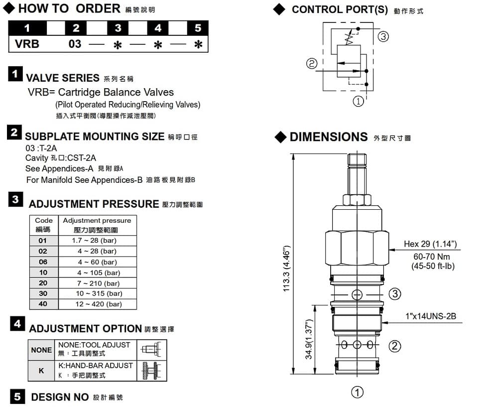 | VRB-03 | 350 (5076 psi) | 80 (21.13 gpm) | 0.3 (0.66 lbs) |