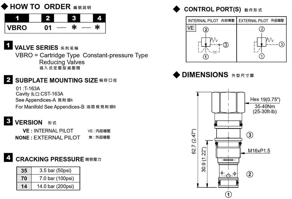 | VBRO-01 | 350 (5076 psi) | 30 (7,93 gpm) | 0,1 (0,22 Pfund) |