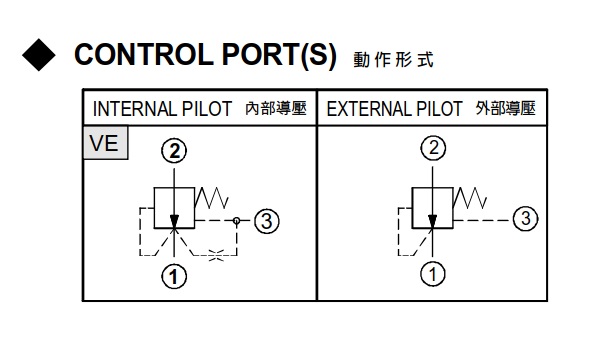 Diese normalerweise offenen Regelelemente mit einer internen Blende zwischen Anschluss 1 und Anschluss 3 können als Hauptstufen-Druckminderventil eingesetzt werden. Das Ventil kann über ein Pilot-Entlastungs- oder Pilot-Magnetventil ferngesteuert werden. - Externer Pilot: