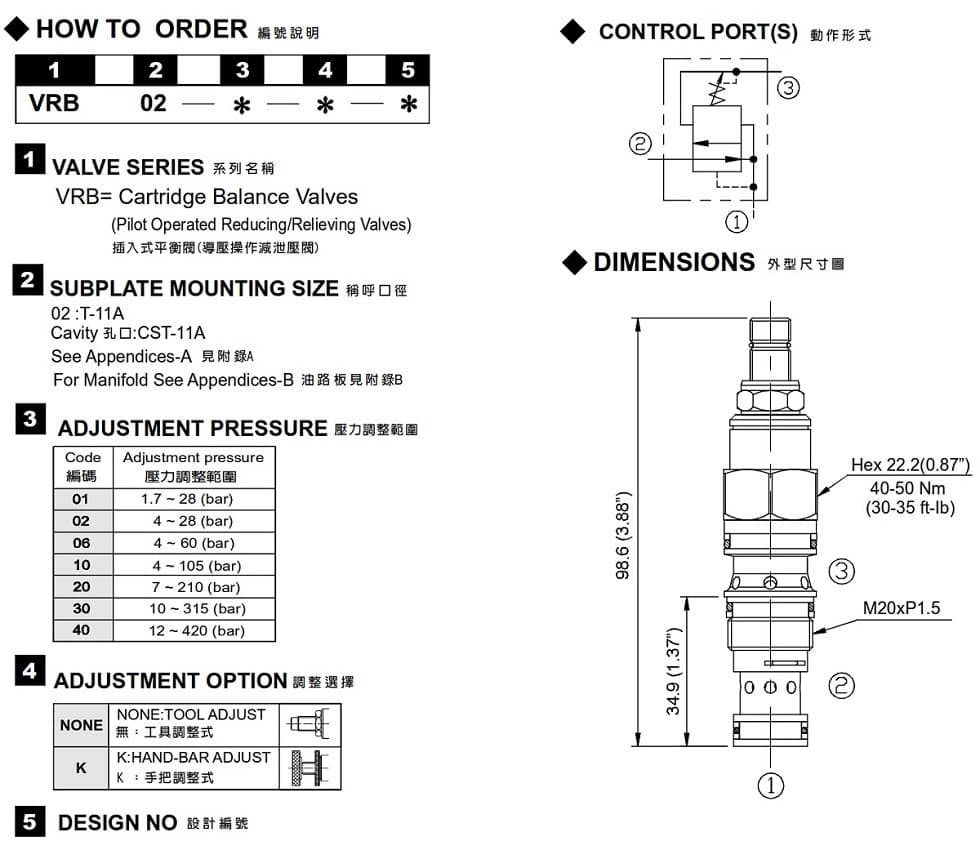 | VRB-02 | 350 (5076 psi) | 40 (10,57 gpm) | 0,18 (0,4 Pfund) |