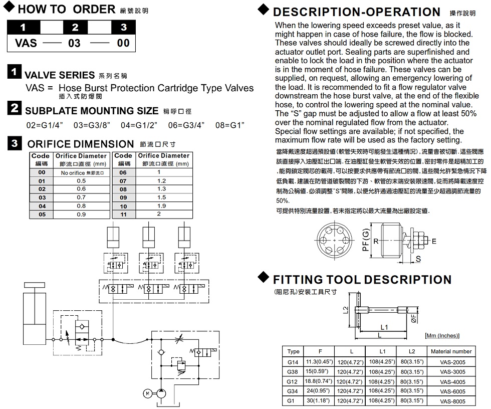 | VAS-08 | 350 (5075 psi) | 220 (58,1 galones por minuto) | 1,05 (2,31 libras) |