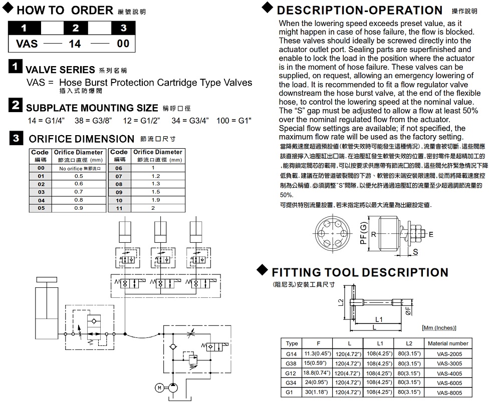 | VAS-14 | 350 (5076 psi) | 25 (6,60 galones por minuto) | 0,007 (0,0154 libras) |