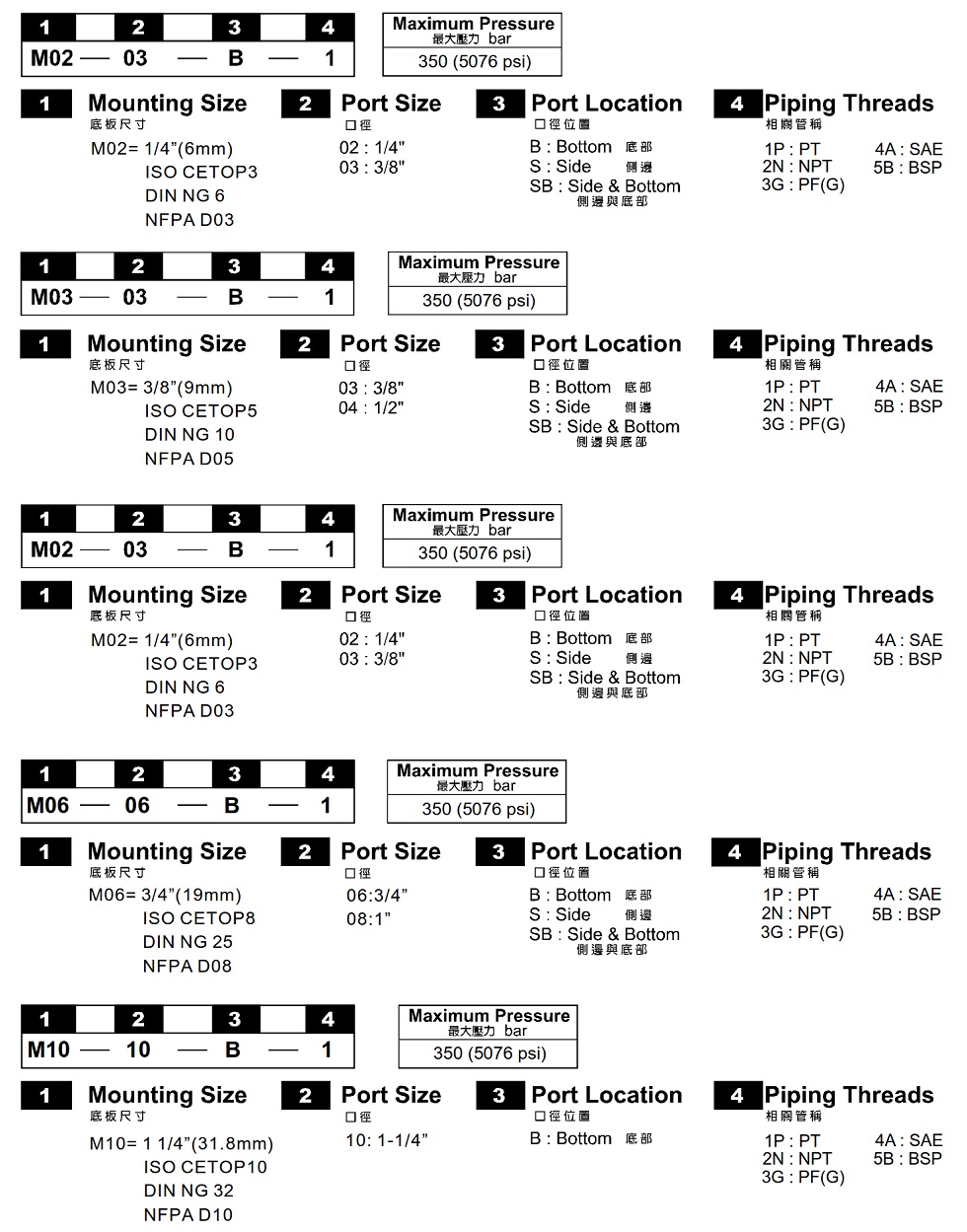 油路板 M02,M03,M04,M06,M10
