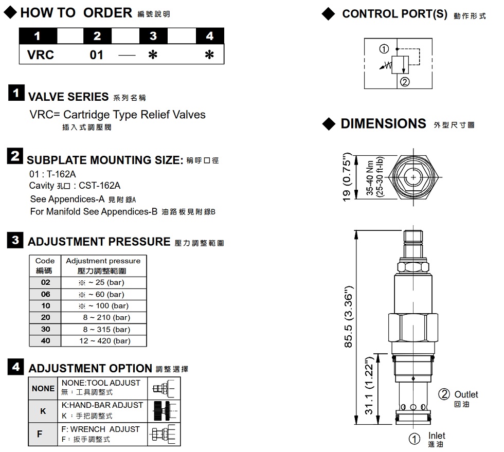 | VRC-01 | 350 (5076 psi) | 45 (11,89 gpm) | 0,12 (0,26 lbs) |