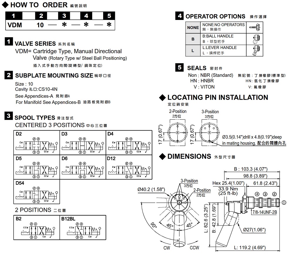 插入式手動方向閥(旋轉型) VDM-10