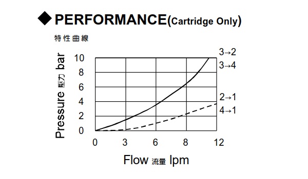 | 型式號碼 | 最大壓力 (bar) | 最大流量 (lpm) | 最大內部洩漏 (cc/min) | 重量 (kg) | |