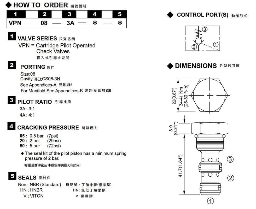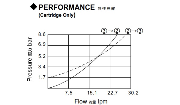| 型式號碼 | 最大壓力 (bar) | 操作壓力 (bar) | 引導比例 | 最大流量 (lpm) | 重量 (kg) |
