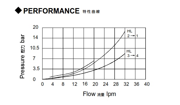 | 型式號碼 | 最大壓力 (bar) | 最大流量 (lpm) | 重量 (kg) |