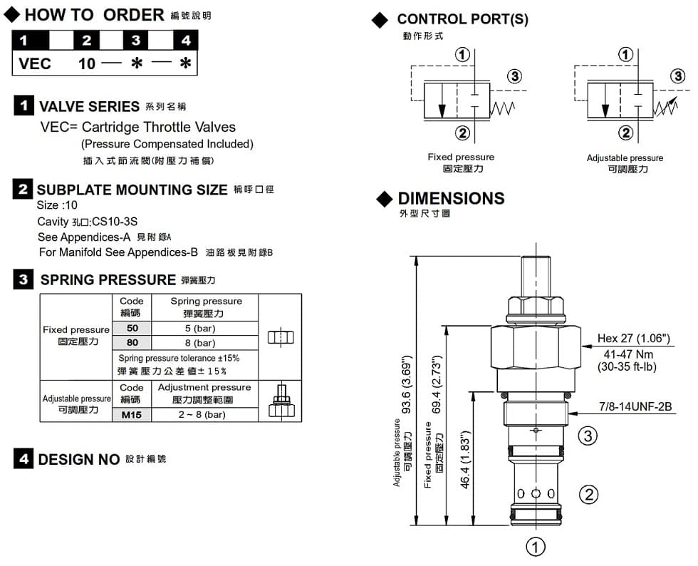 | VEC-10 | 350 (5076 psi) | 1:1 | 60 (15.85 gpm) | 0.2 (0.55 lbs) |