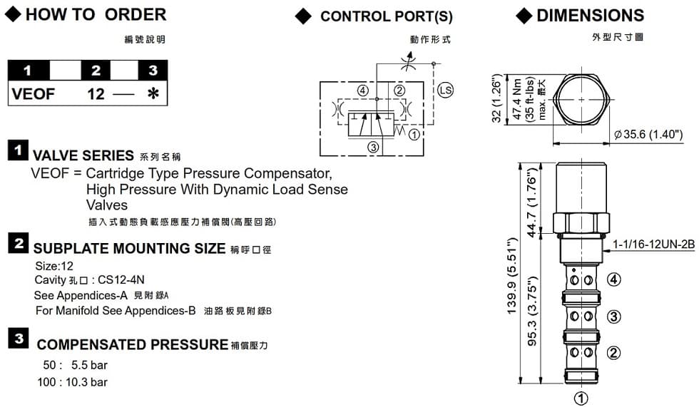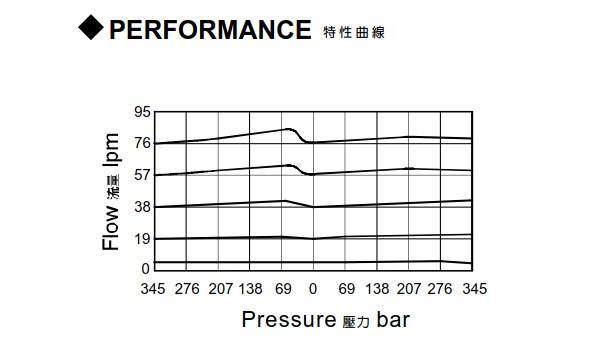 | 型式號碼 | 操作壓力 (bar) | 流量 (lpm) | 重量 (kg) |