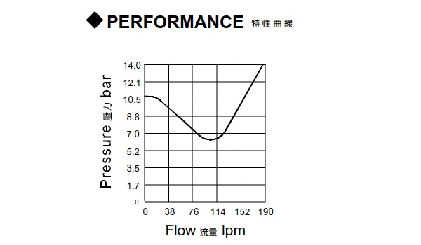 | 型式號碼 | 操作壓力 (bar) | 流量 (lpm) | 重量 (kg) |